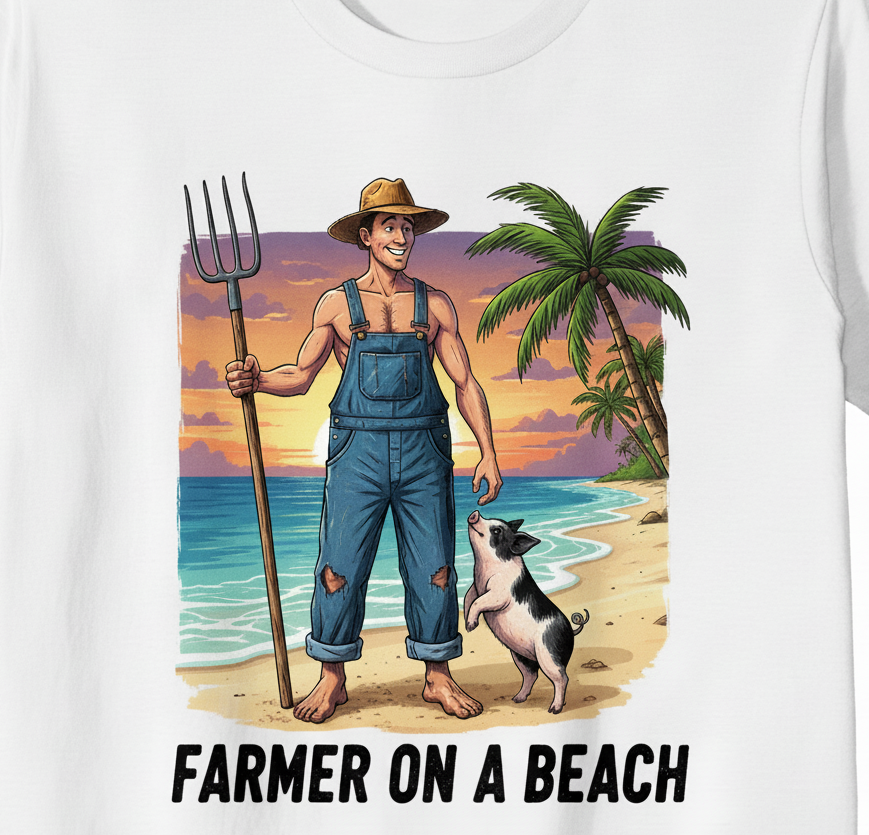 Our inspiration comes from the delightful words and phrases crafted by our Chief Officer of Design, C.H. She accidentally combined words like 'Farmer on a Beach', sparking our unique perspective on apparel.